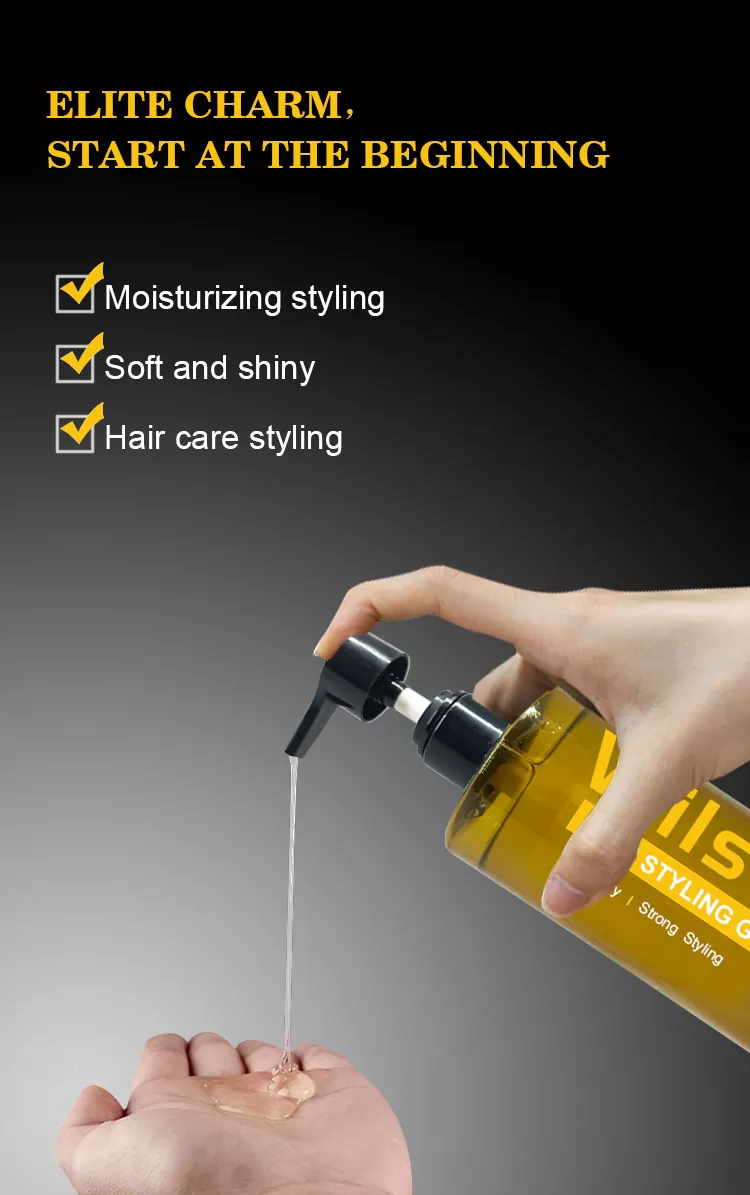 Wilson Men's Ultra Smooth Seamless Hair Styling Gel -kosmetiikka viittaa hiuksiin ruiskutetun tai levitettävän kosmetiikan muotoiluun ja muokkaavaan vaikutukseen, liuottimen haihdutukseen ja hiuksiin kuivumiseen läpinäkyvän kalvon muodostamiseksi, jotta hiuskuitu kovettuu ja säilyttää tarkoituksenmukaisen muodon erilaisten kampausten tarpeisiin.