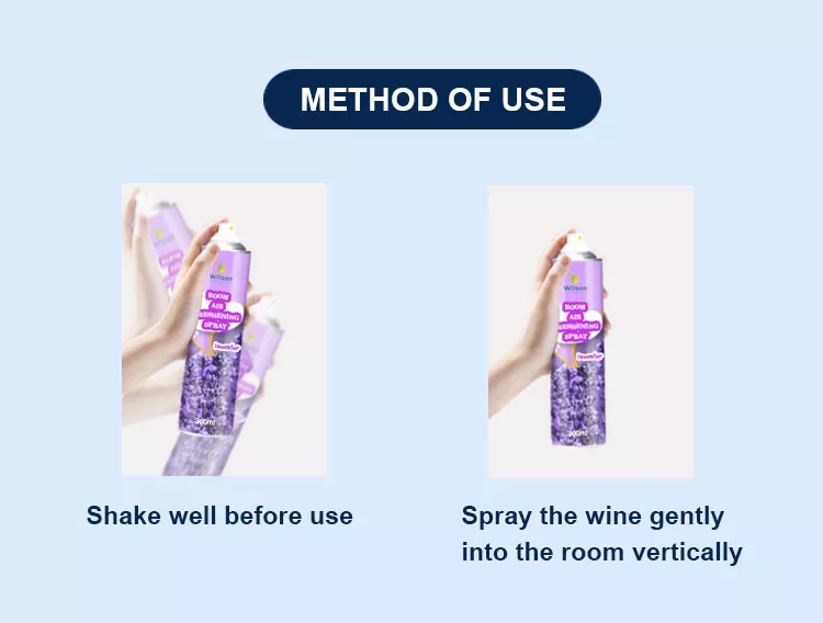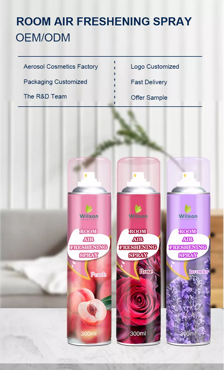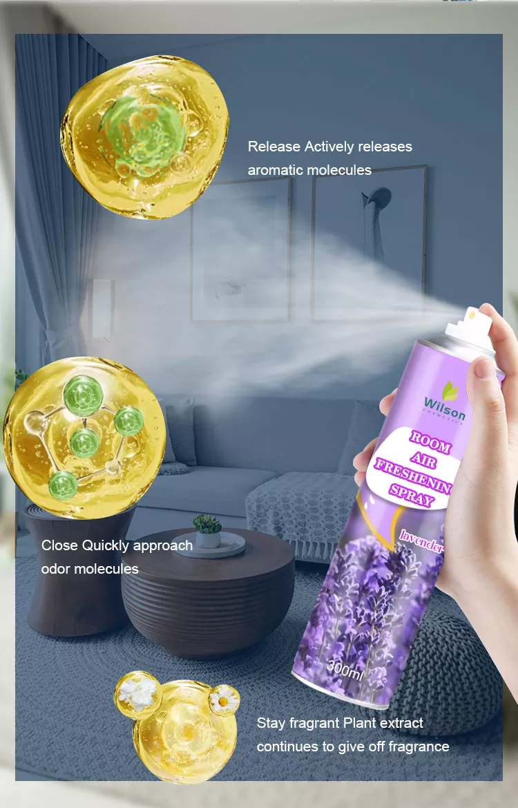 Room Air Freshener Spray -tuotekotelossamme on hienostunut alumiini/peltitölkki, kompakti tilavuus, helppo kuljettaa aina mukana, 360 asteen painesuutin, jotta suihke voidaan suihkuttaa ja virtaamaan tasaisesti. Se ei ainoastaan poista haitallisia aineita, kuten hajua, formaldehydiä, PM2.5-hiukkasia, vaan myös suodattaa tehokkaasti hienoja hiukkasia, kuten pölyä ja viruksia ilmassa, luoden sinulle puhtaan ja raikkaan kotiympäristön.